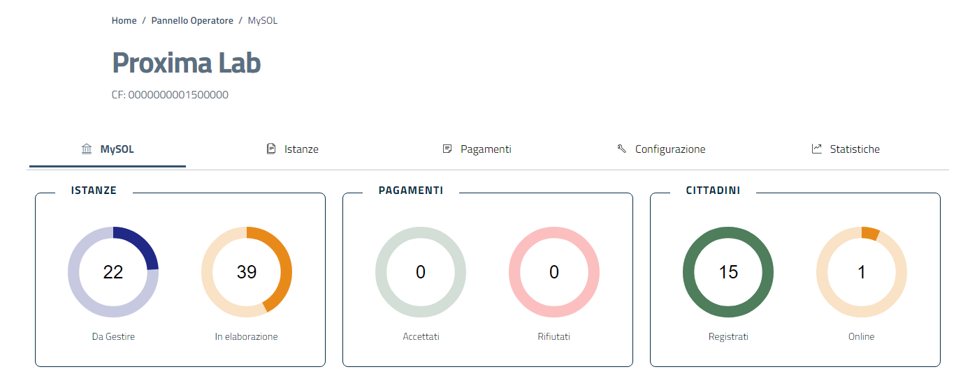 Da questo portale potremo operare nella gestione delle istanze presentate, nella configurazione dei servizi e nella loro gestione.