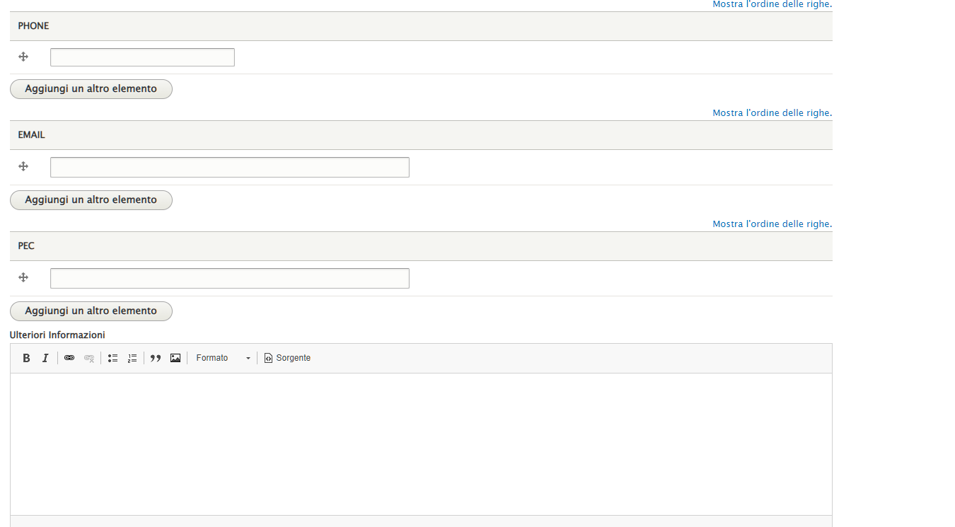 Inserire tutti i dati necessari. Per aggiungere più numeri di telefono o mail, cliccare su "Aggiungi un altro elemento".