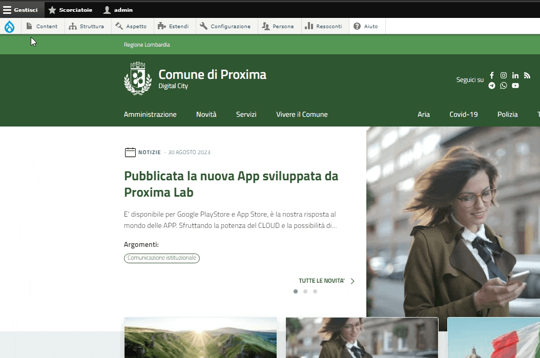 Questo contenuto permette di creare una pagina dedicata ad un Ente, una fondazione ma anche un'associazione cittadina, che verrà pubblicato sotto la voce "Amministrazione" del menù principale.