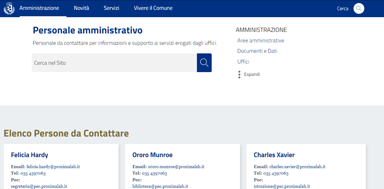 E' importante aggiungere il ruolo che ogni dipendente ricopre all'interno del proprio ufficio di appartenenza, un numero telefonico e una mail di riferimento.